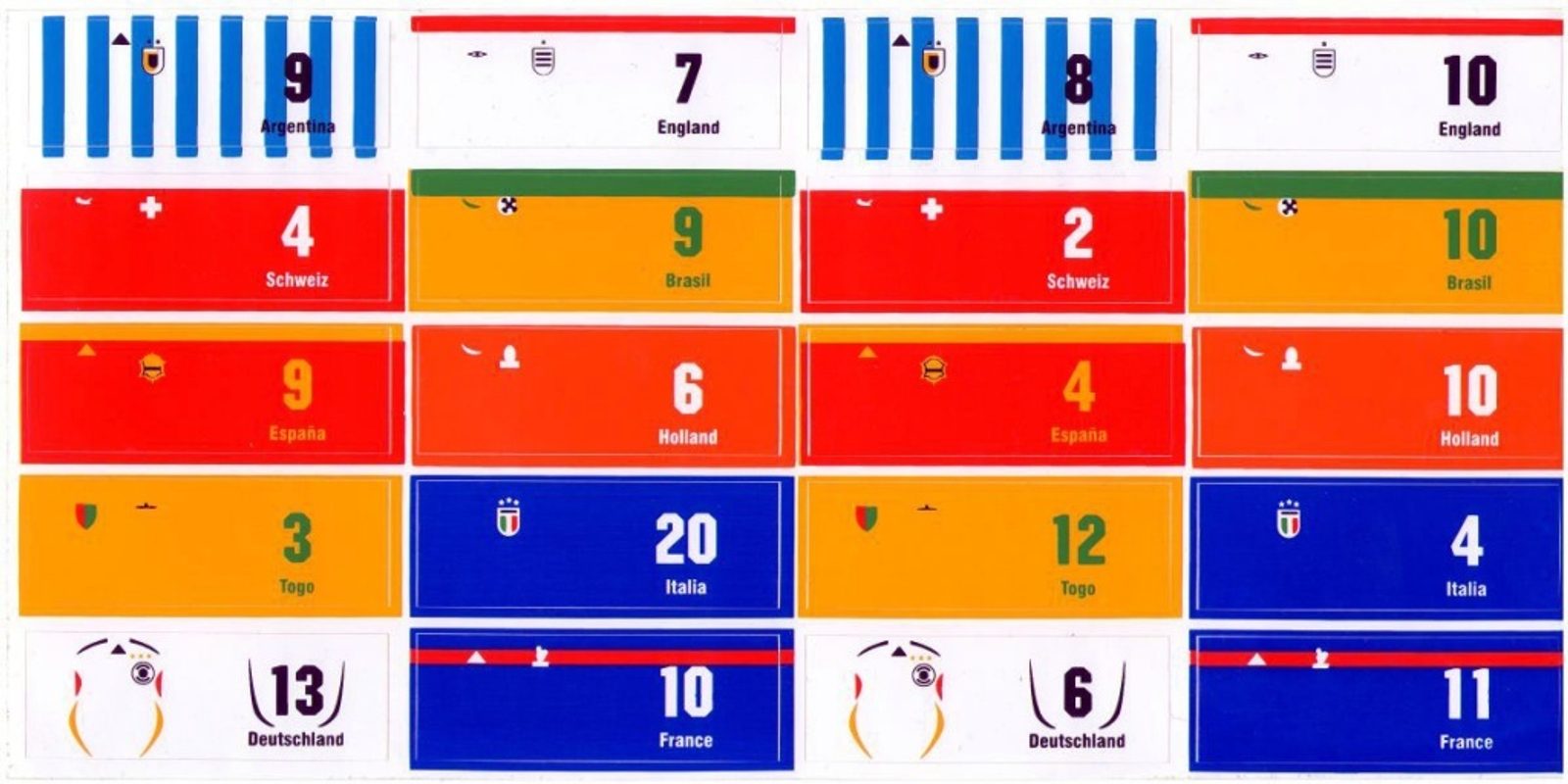 WeyKick Trikot samolepky (model 799) je sada celkem 20 nalepovacích dresů v různých barvách pro hráče magnetických her Weykick.